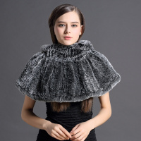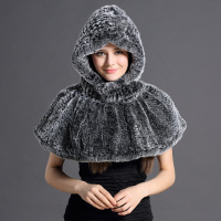 獭兔毛连帽围巾 兔毛帽子脖套围巾一体皮草帽子围巾 黑草 均码