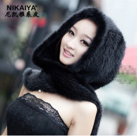 新品水貂帽子围巾一体女士保暖水貂编织围巾裘皮皮草围巾帽子冬