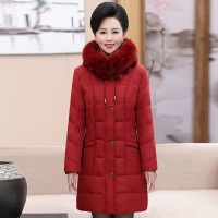 妈妈装气质白鸭绒羽绒服中长款加肥加大中老年女装毛领防寒外套冬