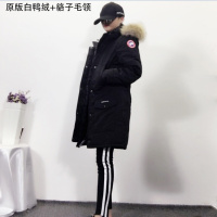 冬季新款女装大码中长款羽绒外套韩版修身白鸭绒羽绒服女黑色、原白鸭绒