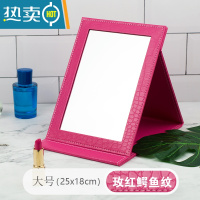 敬平便携折叠随身台式桌面化妆镜子网红PU皮革大号宿舍寝室梳妆镜便携式用镜 大号鳄鱼纹红色(25*18)