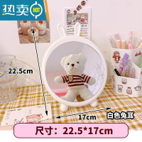 敬平可爱镜子化妆镜台式桌面宿舍学生女家用小型便携折叠梳妆镜ins风 立体边框台面镜*白色兔耳便携式用镜