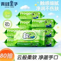 青蛙王子湿纸巾80抽*5包婴儿家用幼儿手口专用湿巾大包装套装收口云柔湿巾