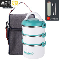 三维工匠304多层学生饭盒成人不锈钢保温饭盒分层餐盒大容量分隔便当盒桶 绿色三层[配304餐具]+保温提袋