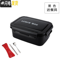 三维工匠日式304不锈钢便当盒饭盒健身餐便当盒上班族学生简约分隔饭盒 黑色+餐具