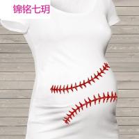 锦铭七玥白色垒球新孕妇装T恤时尚简约百搭数码印花短袖T恤r