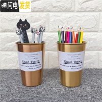 三维工匠笔筒创意时尚简约北欧风ins金色收纳盒化妆刷桶桌面摆件办公文具 小号金色304不锈钢笔筒
