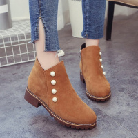 2017秋冬季新款欧美圆头低跟粗跟短靴女及裸靴复古钉珠V口女靴子