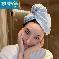 敬平双层加厚干发帽女吸水可爱时尚蓝色珊瑚绒薄款长发浴帽包头巾 2条单层单扣简装(粉蓝咖绿紫)