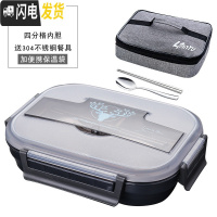三维工匠316不锈钢学生保温饭盒四格分格型单人便携便当盒ins风微波炉加热 烟雾灰+饭盒袋