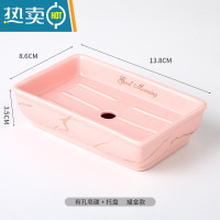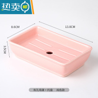 敬平北欧轻奢风创意陶瓷香皂碟肥皂盒置物架沥水浴室卫生间家用小皂盒 长方纯粉色有孔+托盘皂碟