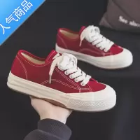 SUNTEKddoo夏季红色帆布鞋女款2023新款百搭绿色板鞋黑色布鞋厚底球鞋子