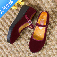 SUNTEK春秋款老北京工艺布鞋松糕厚底女红色舞蹈鞋舒适软底散步鞋妈妈鞋