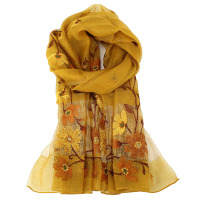 秋冬季真丝羊毛手工订珠长款丝巾空调保暖韩版女冬季围巾披肩两用