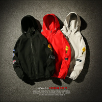 秋季贴标连帽夹克男士加肥大码开衫外套韩版宽松学生衣服潮流男装