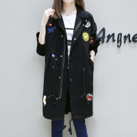大码女装风衣200斤胖mm2017秋装宽松绣花时尚显瘦中长款开衫外套