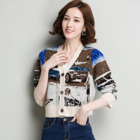 秋季V领短款毛衣宽松短外套女针织开衫韩版复古秋冬季厚百搭长袖