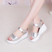 女鞋夏2017新款坡跟凉鞋女厚底鱼嘴鞋子百搭韩版女士凉鞋水钻