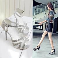 2017新款新款12CM高跟凉鞋女夏防水台绑带镂空网纱水钻性感夜店细跟鱼嘴鞋
