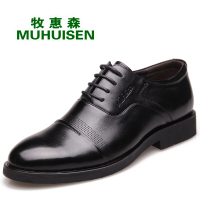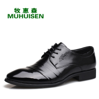 牧惠森2016秋冬季新款男士系带圆头单鞋商务正装皮鞋婚鞋舒适单鞋休闲低帮鞋黑色