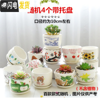 三维工匠多肉花盆陶瓷大号肉肉植物个性绿萝创意简约大口径小花盆 随机4个带托盘10cm 小花盆容器