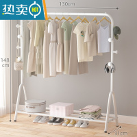 敬平晾衣架落地杆家用卧室晾衣杆折叠挂衣服架子凉衣架晒衣架简易单杆 ⭐️[升级置物]130cm白色8️⃣钩3杆 大