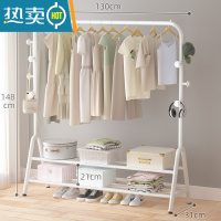 敬平晾衣架落地杆家用卧室晾衣杆折叠挂衣服架子凉衣架晒衣架简易单杆 ⭐️[双层置物]130cm白色8️⃣钩5杆 大