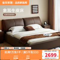 全友家居真皮床轻奢风现代简约主卧头层牛皮软包靠背双人床