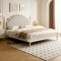 全友家居法式软包床屏小户型卧室家具实木床脚高脚床双人大床