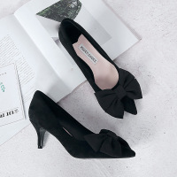 高跟鞋2017夏季新款韩版百搭蝴蝶结浅口单鞋尖头中跟猫跟小码女鞋