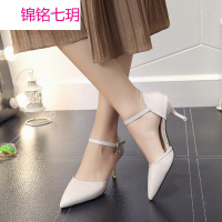 2018新款一字扣中空凉鞋女高跟鞋细跟浅口单鞋尖头包头凉鞋代发