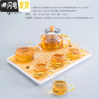 三维工匠茶盘功夫茶具套装家用简约玻璃茶壶日式储水小茶台竹木制客厅托盘 听云小号茶盘+B款壶一壶四杯