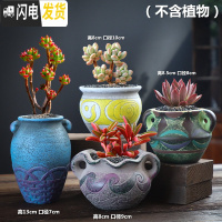 三维工匠多肉花盆老桩陶瓷大号肉肉植物创意简约粗陶个性小花盆 地中海02组合5个 中等花盆容器