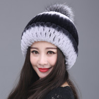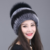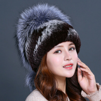 獭兔毛帽子女冬季护耳保暖加厚兔毛编织皮草帽子女冬天狐狸毛球帽黑色可调节