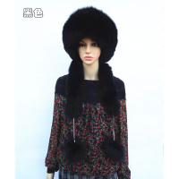 狐狸毛帽子女款裘皮帽皮草双辫子蒙古公主帽獭兔毛帽顶冬季护耳帽黑色