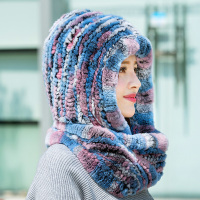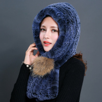 兔毛帽子女冬季獭兔毛编织加厚皮草帽子围巾一体冬天骑车帽风雪帽臧蓝色均码(56-58cm)