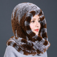 兔毛帽子女冬天韩版獭兔毛编织冬季户外保暖加厚骑车防风皮草帽子灰棕迷彩均码