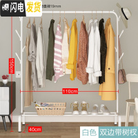 三维工匠单杆式晾衣架落地衣架晒衣架简易晾衣杆折叠室内阳台衣服架挂衣架 白色普通双边树杈(110CM宽)