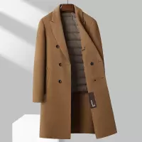 100%羊毛双排扣过膝长款羊毛大衣秋冬男士羽绒内胆双面呢大衣