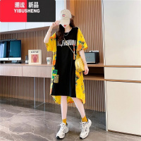 YIBUSHENG特大码300斤中长款设计感小众短袖T恤裙季新款宽松慵懒连衣裙潮