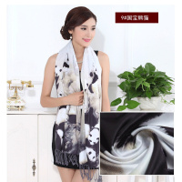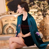 中国风手绘重磅真丝丝巾女长款桑蚕丝围巾披肩两用长巾杭州丝绸