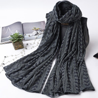 女士丝巾长款真丝顺纡绣花围巾秋冬季韩版百搭桑蚕丝深灰披肩绣花顺纡灰色