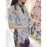 原创真丝围巾丝绸青花瓷 桑蚕丝女士真丝丝巾长款披肩 国画青花瓷