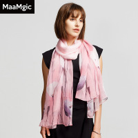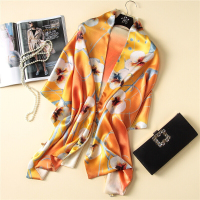桑蚕丝围巾双层缎面喷绘杭州重磅真丝丝巾长款妈妈披肩商务礼