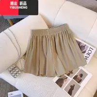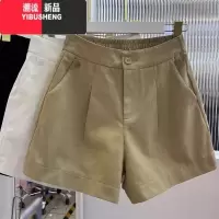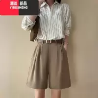 YIBUSHENG通勤百搭~卡其色西装休闲短裤女高腰a字阔腿裤宽松直筒短裤