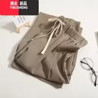 YIBUSHENG卡其色冰丝西装裤女季薄款高腰窄版休闲裤遮肉显瘦垂感阔腿裤子