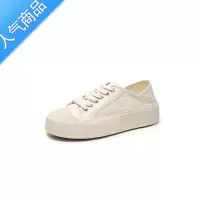 SUNTEK小香风厚底帆布鞋女2023秋季新款白色百搭系带板鞋韩版增高饼干鞋