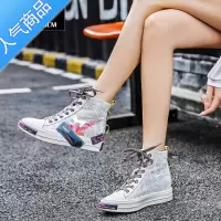 SUNTEK高帮帆布鞋女2023新款夏季百搭涂雅白色板鞋休闲女款内增高小白鞋
