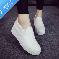 SUNTEK小白鞋女夏季2023松糕鞋白色帆布鞋女韩版厚底内增高懒人鞋休闲鞋