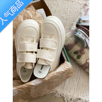 SUNTEK甜桃星球魔术贴小白鞋女2023夏季新款港风增高厚底百搭白色帆布鞋